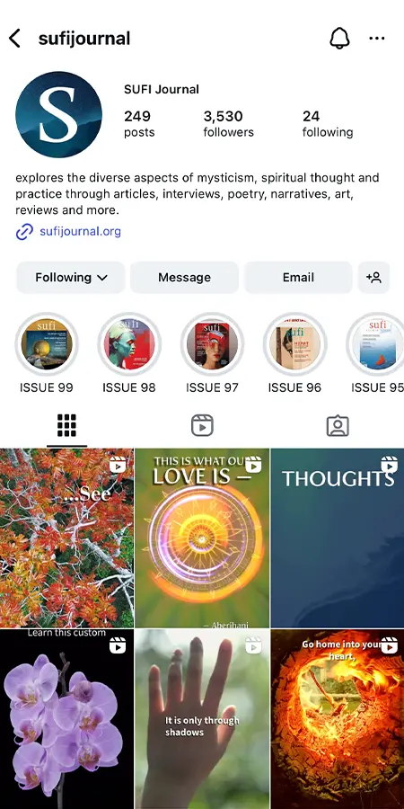 As our world is evolving, so is SUFI being re-imagined and reformulated to be a remarkable, immersive digital experience by featuring poetry readings, podcasts, video, music, and special offerings. Now it is available through an app for mobile phones at an annual subscription price of USD$19.99.